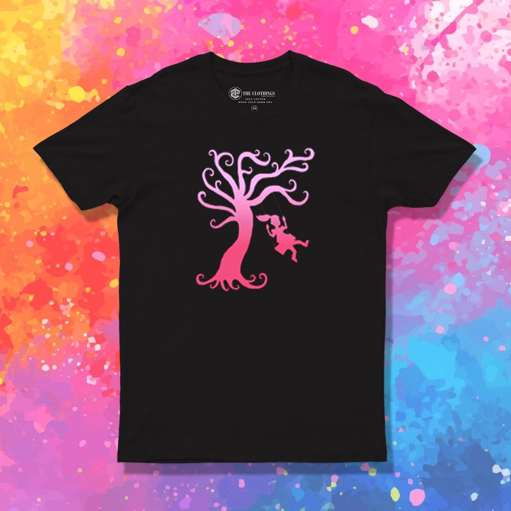 Pink Girly Tree Swing Silhouette T-Shirt – Cheap Clothings Design for Your Style – Theclothings.com