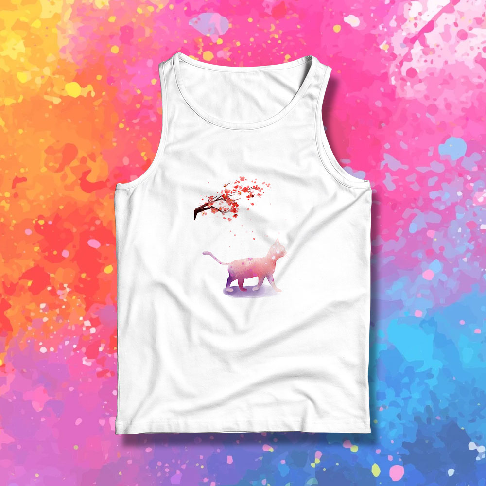 Pink Watercolor Cat Sakura Tree Tank Top – Cheap Clothings Design for Your Style – Theclothings.com
